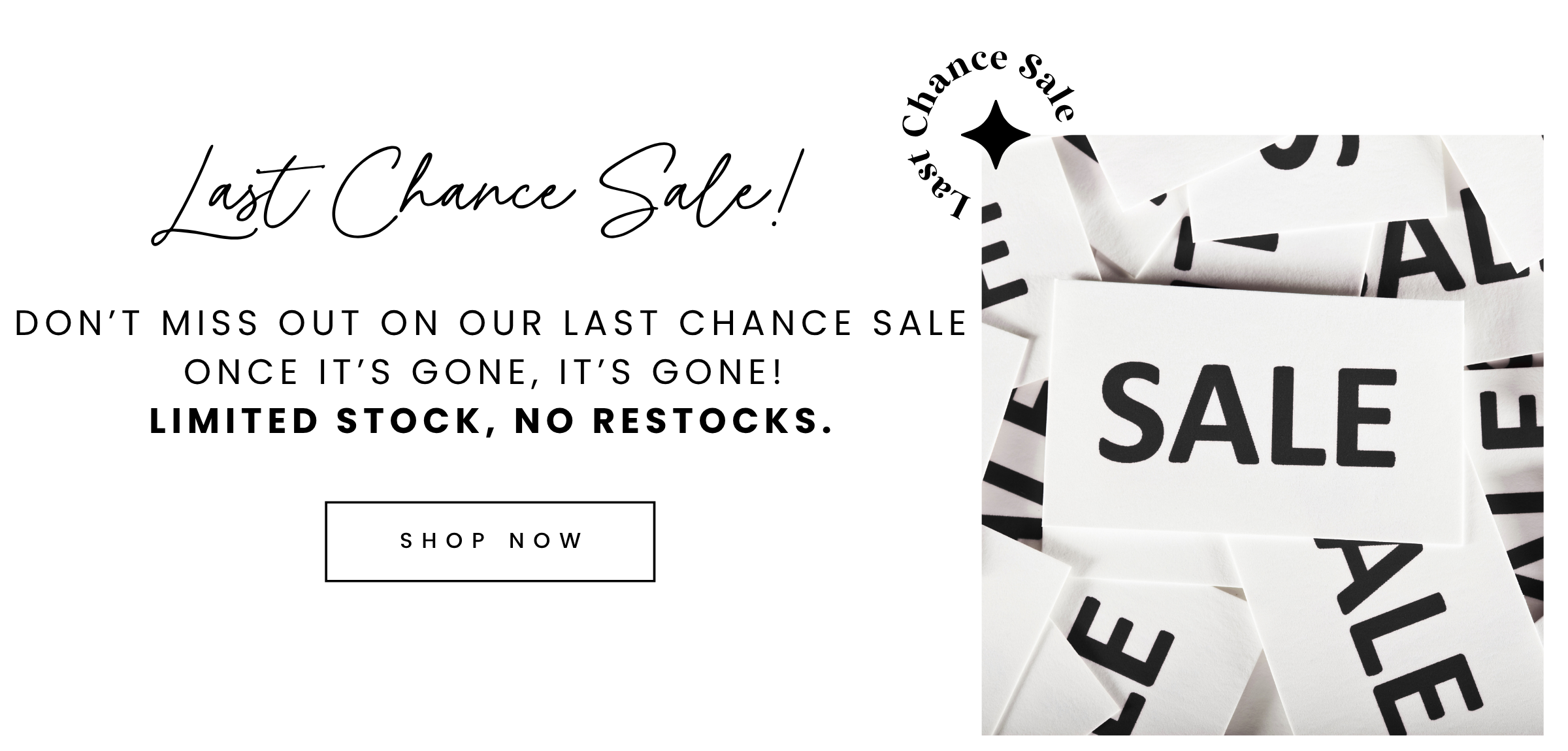 Last chance stock! Once this stock has gone we will no longer...