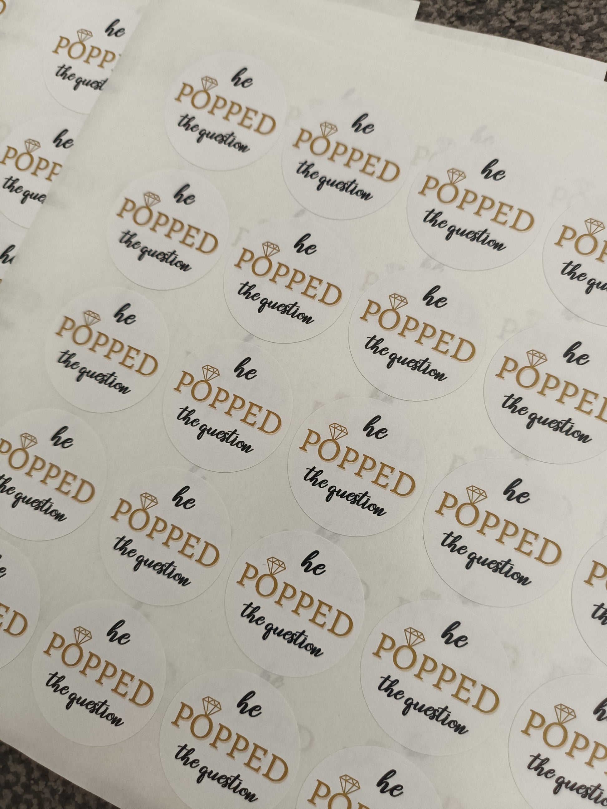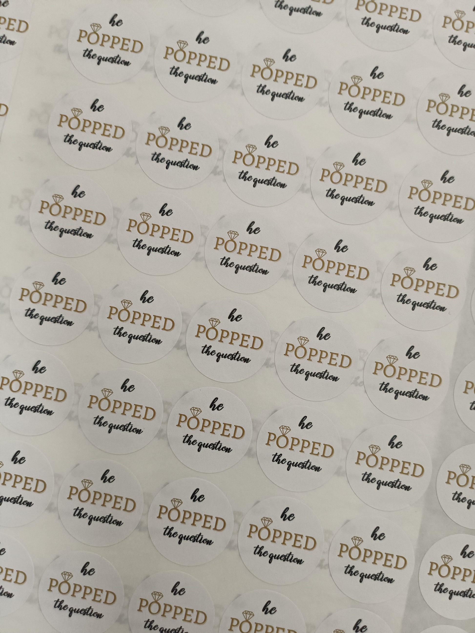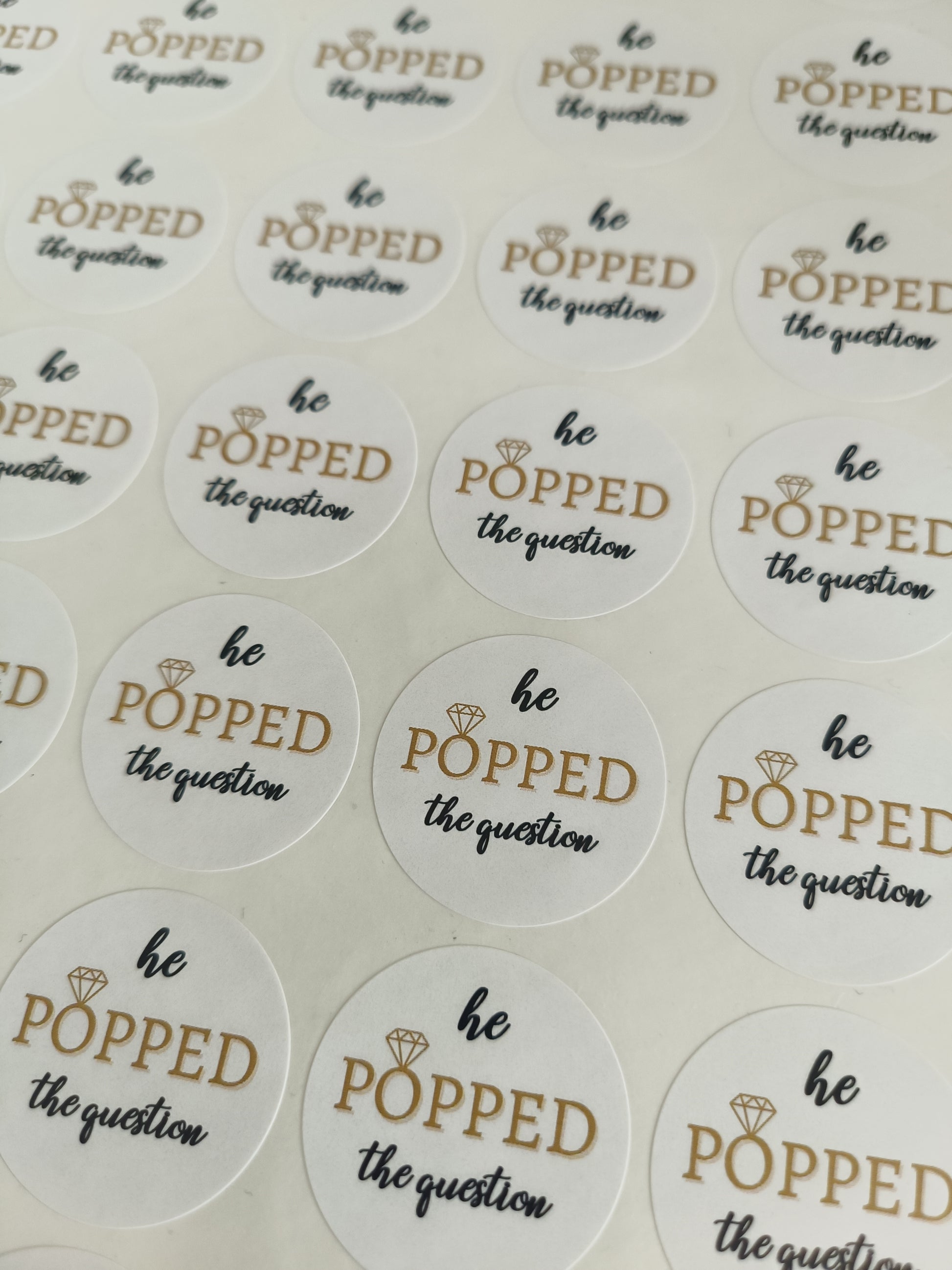 Engagement Stickers | Various Sizes | He Popped The Question | Engagement Party