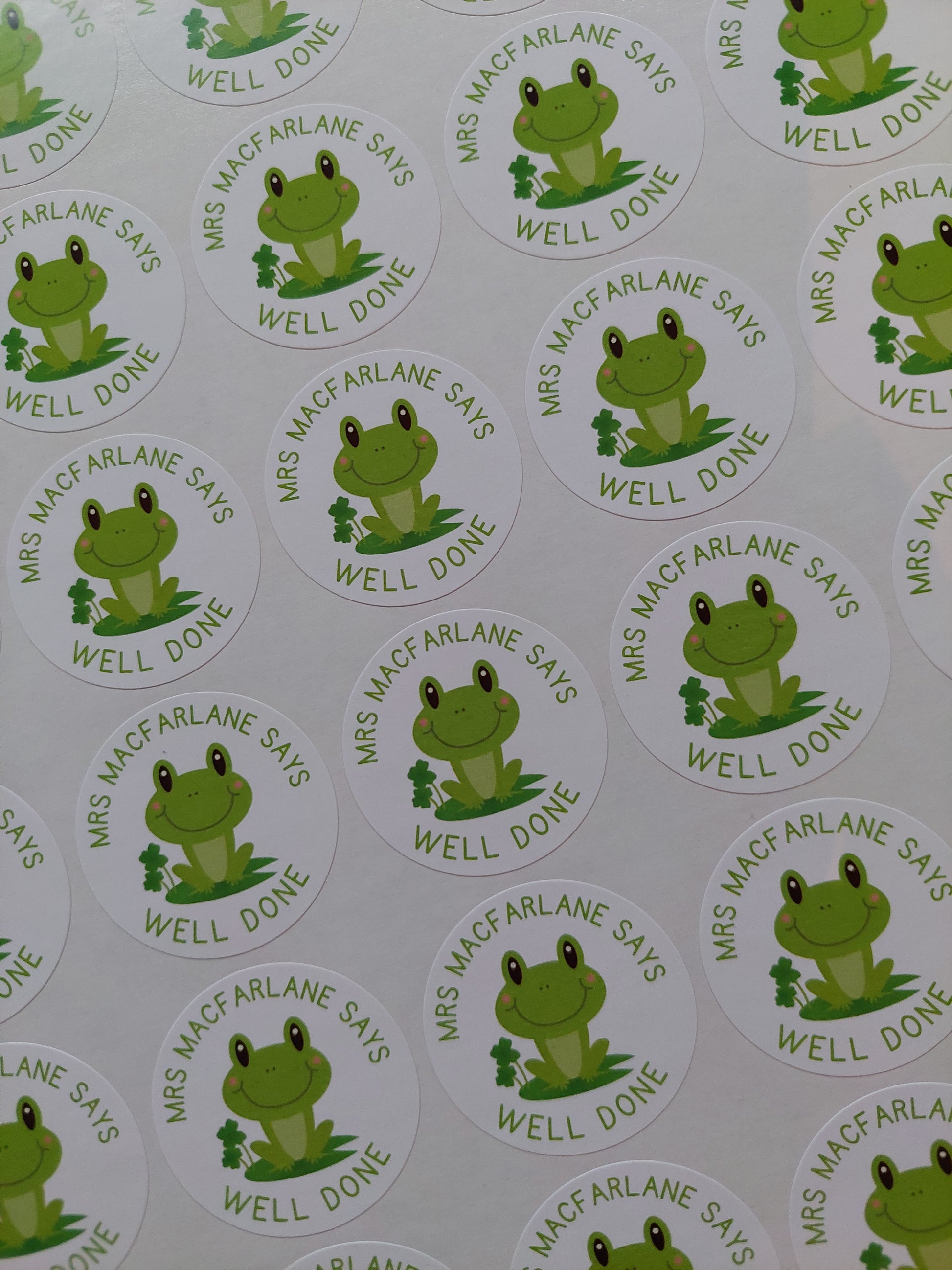 Frog Teacher Stickers | Sticker Sheet 45mm Circles | Well Done Stickers | Circle Stickers | Sticker Sheet | Personalised Star Classroom Stickers