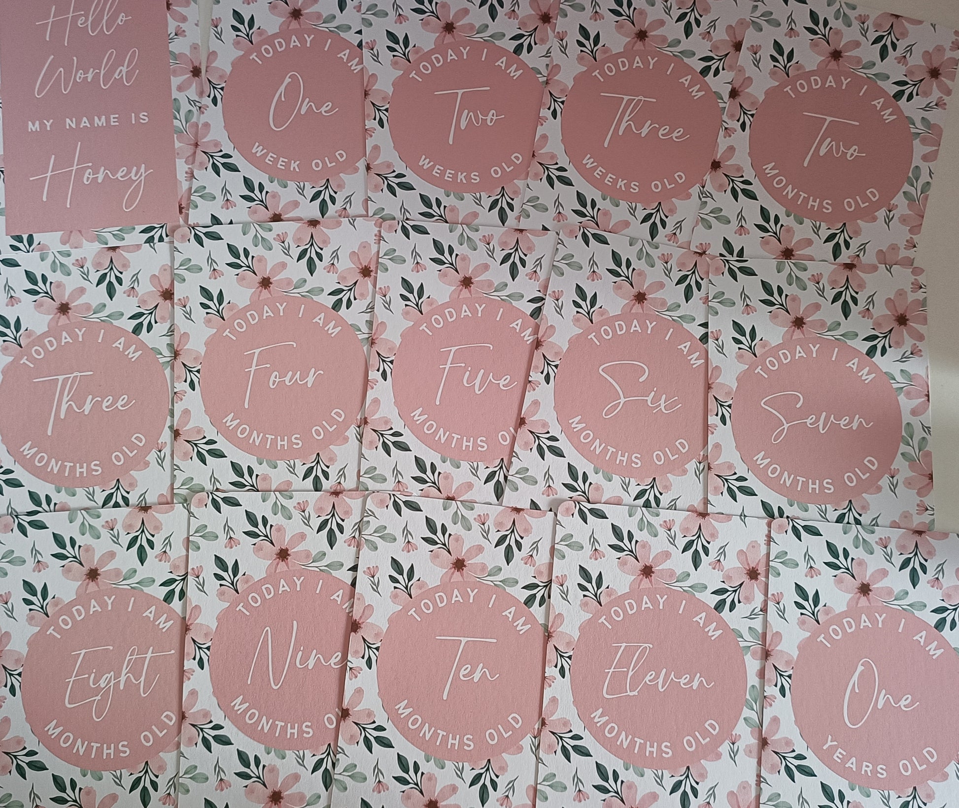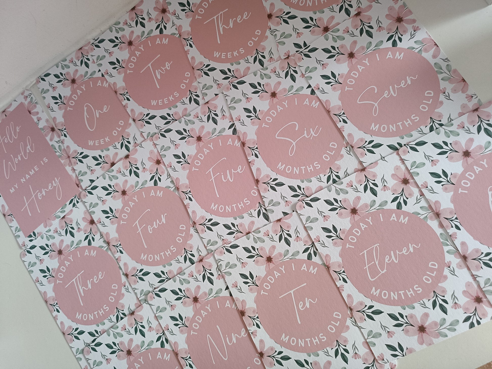 Milestone Cards | A6 Baby Milestone Cards | Pink Floral Theme | New Baby Gift Idea