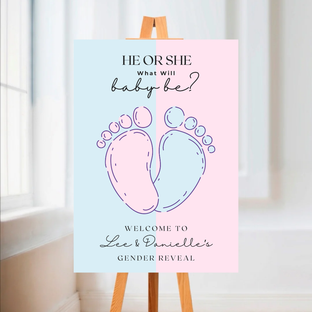 Pink Blue Baby Feet Footprint Gender Reveal Welcome Board Sign | Personalised Gender Reveal Board | Party Sign | A4, A3, A2