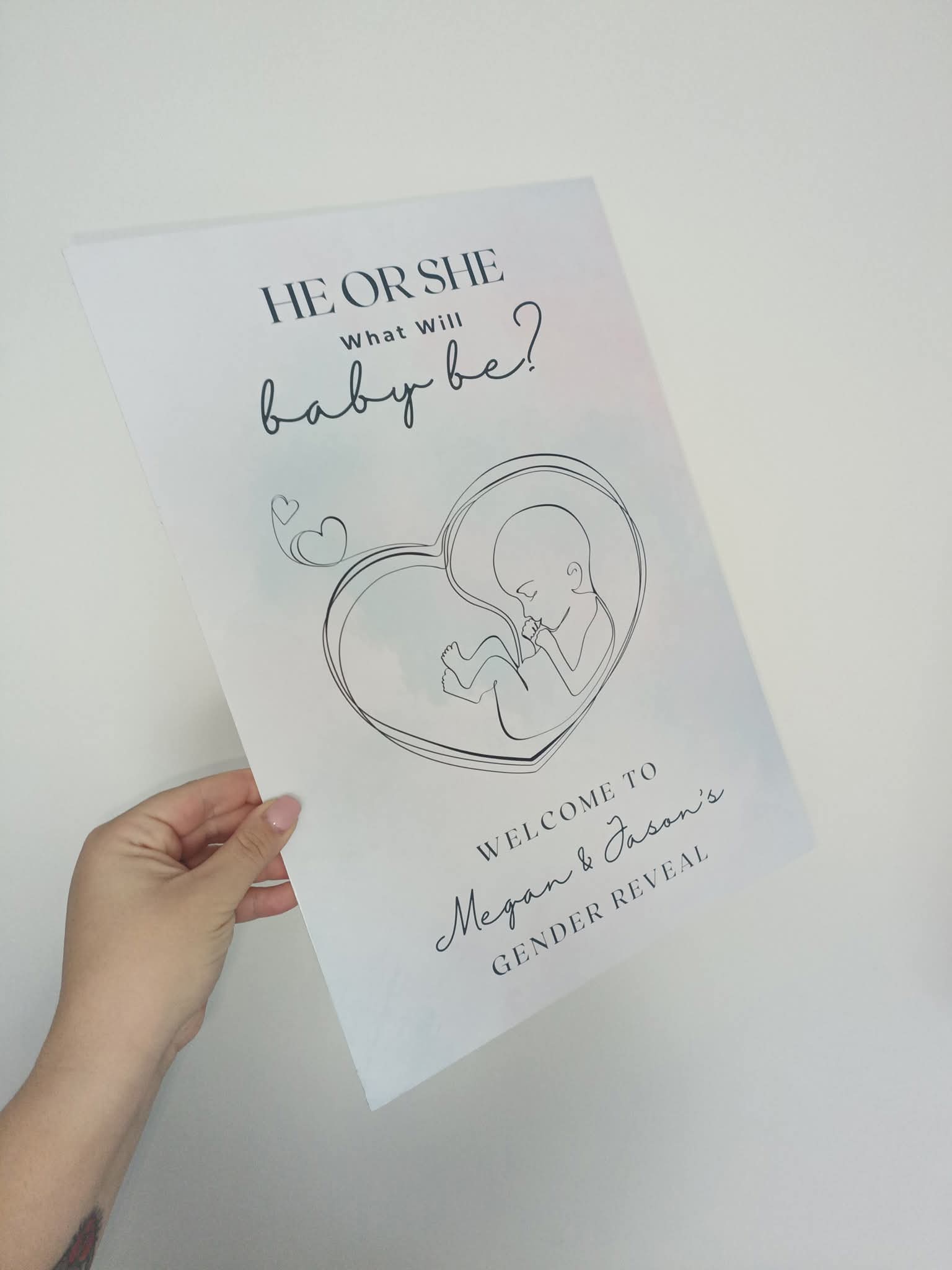 Pink Blue Baby Gender Reveal Welcome Board Sign | Personalised Gender Reveal Board | Party Sign | A4, A3, A2