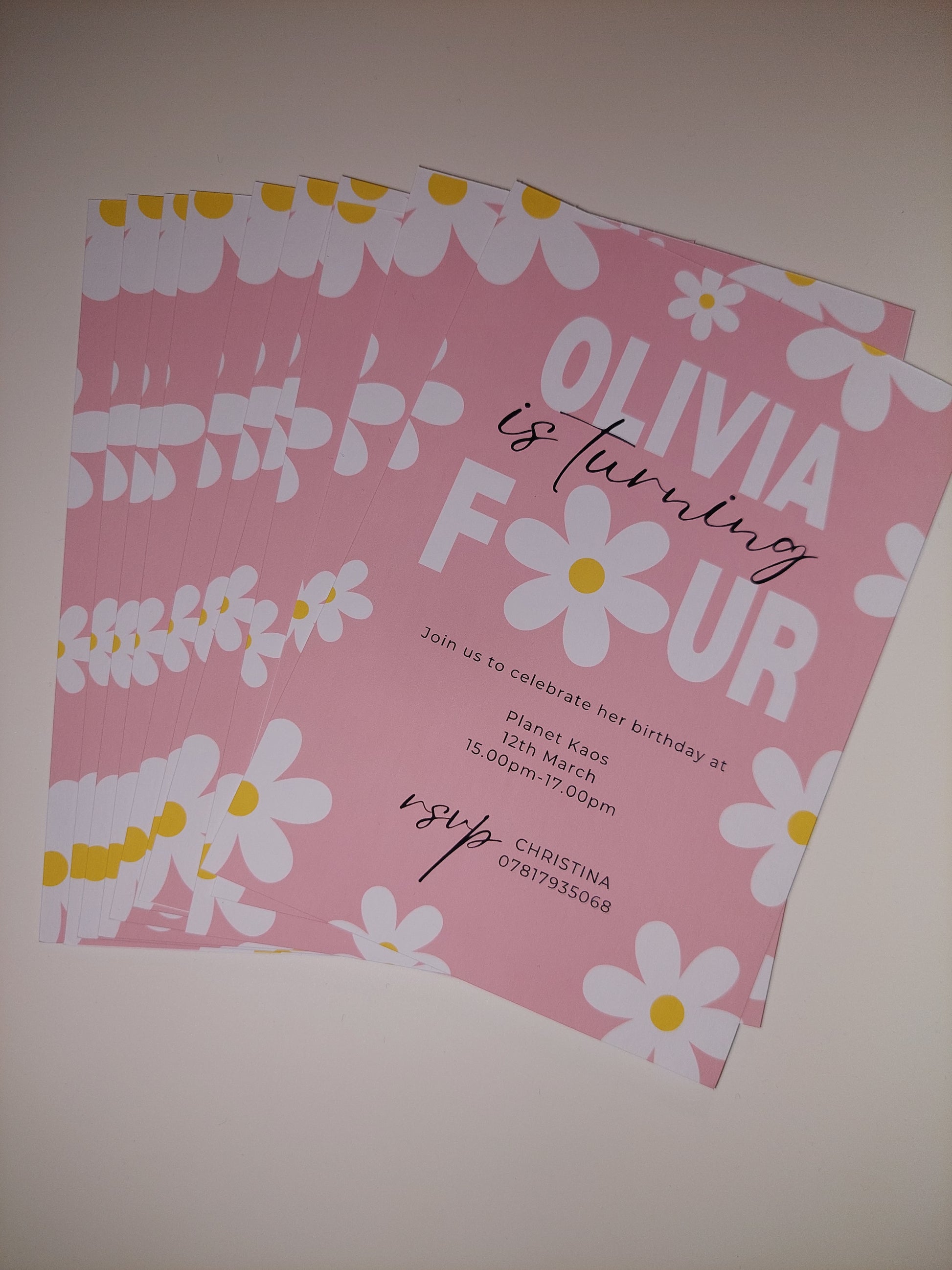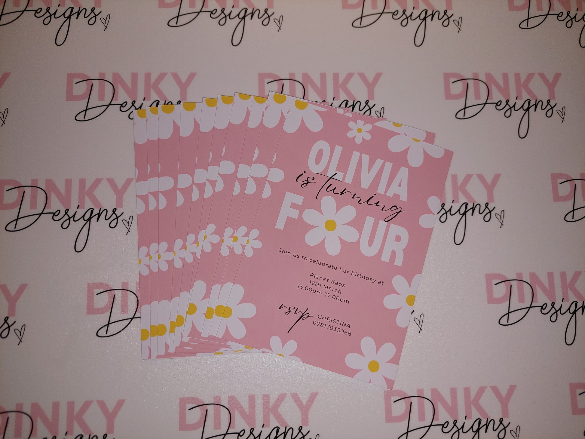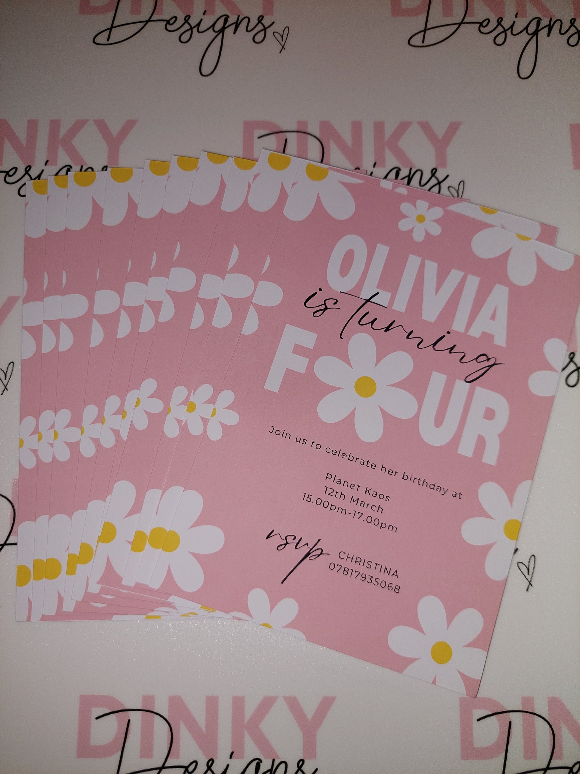 Pink Daisy Party Invitations | A6 Invites | Daisy Theme Invitations | Party Invitations