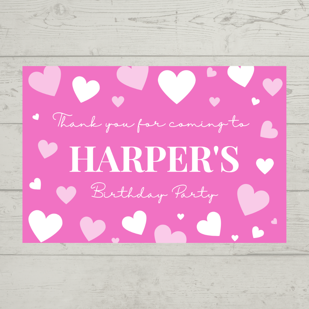 Rectangle Stickers | Pink Heart Party Stickers | Party Bag Stickers