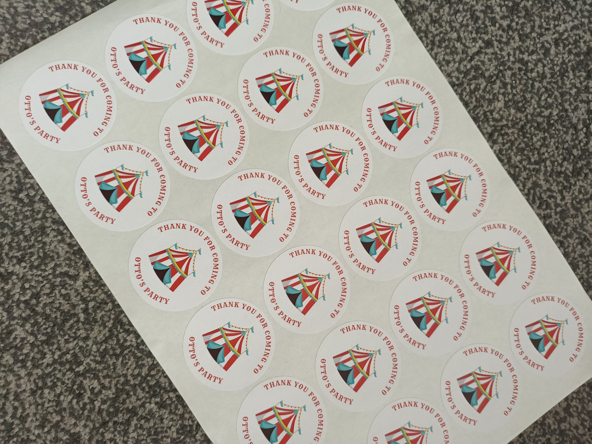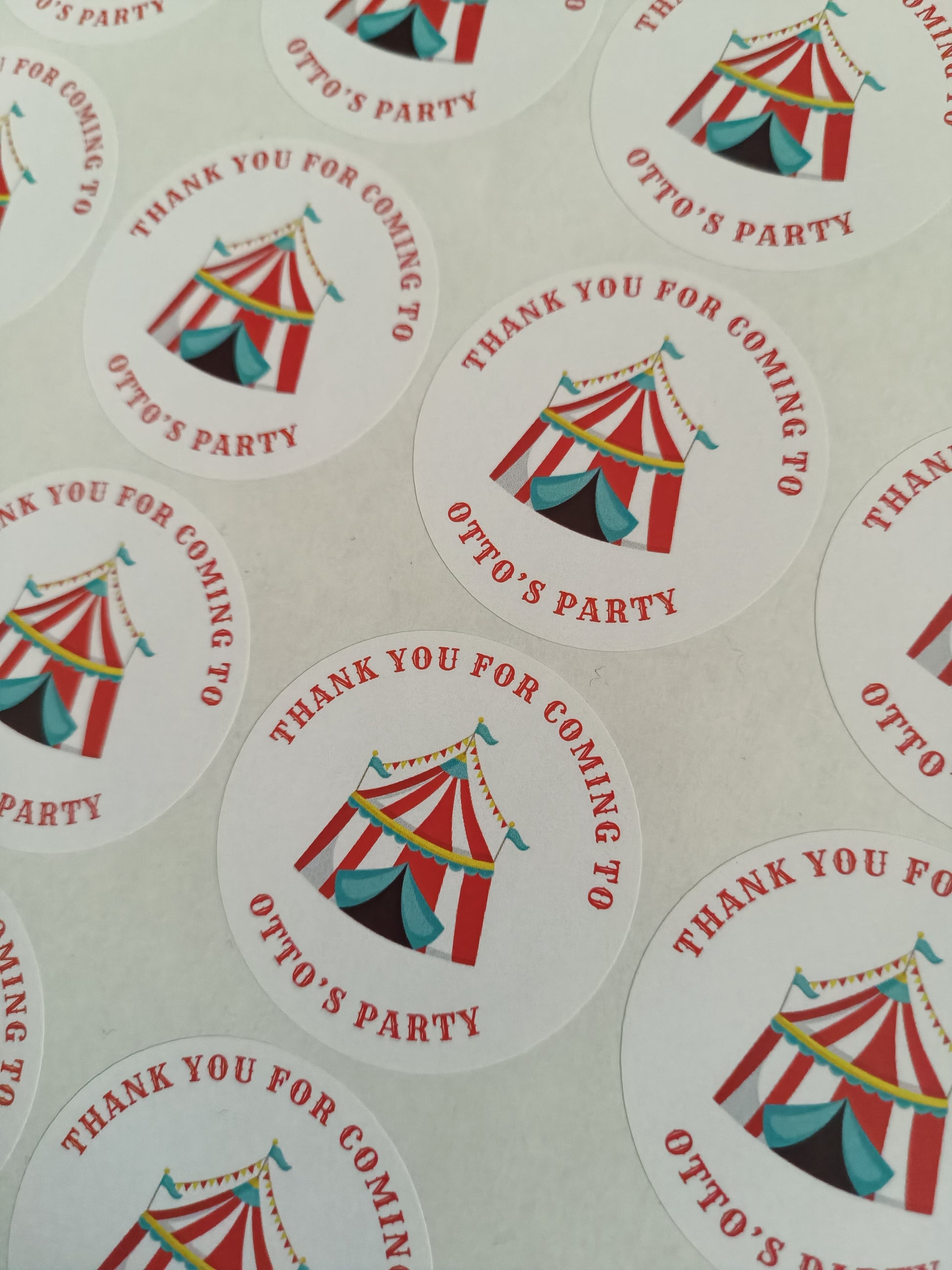 SALE - 45mm Circus Stickers | Party Bag Stickers | Thank You For Coming To Otto's Party