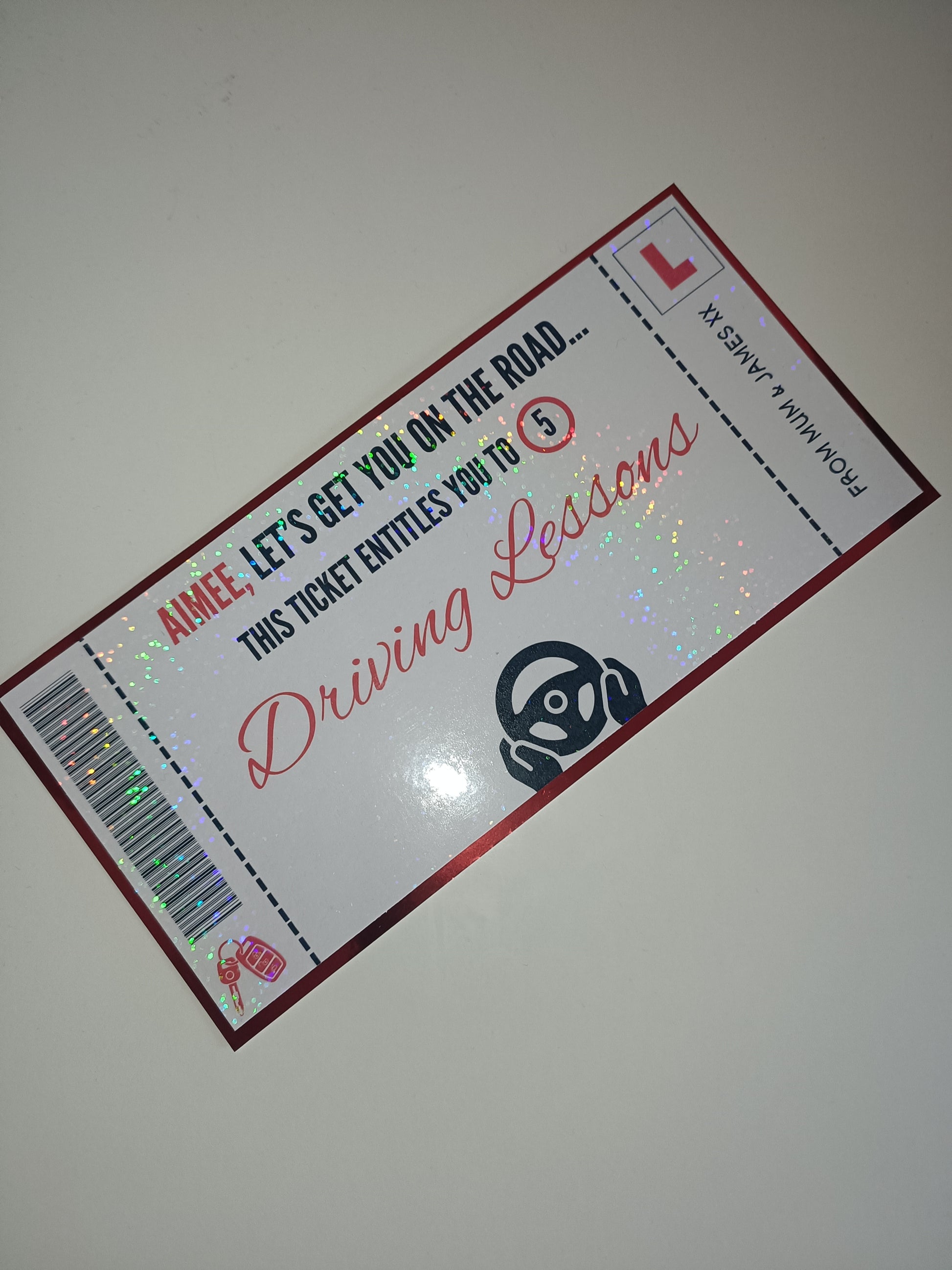 Surprise Ticket Print | Personalised Red Driving Lessons Ticket Voucher | Gift Idea