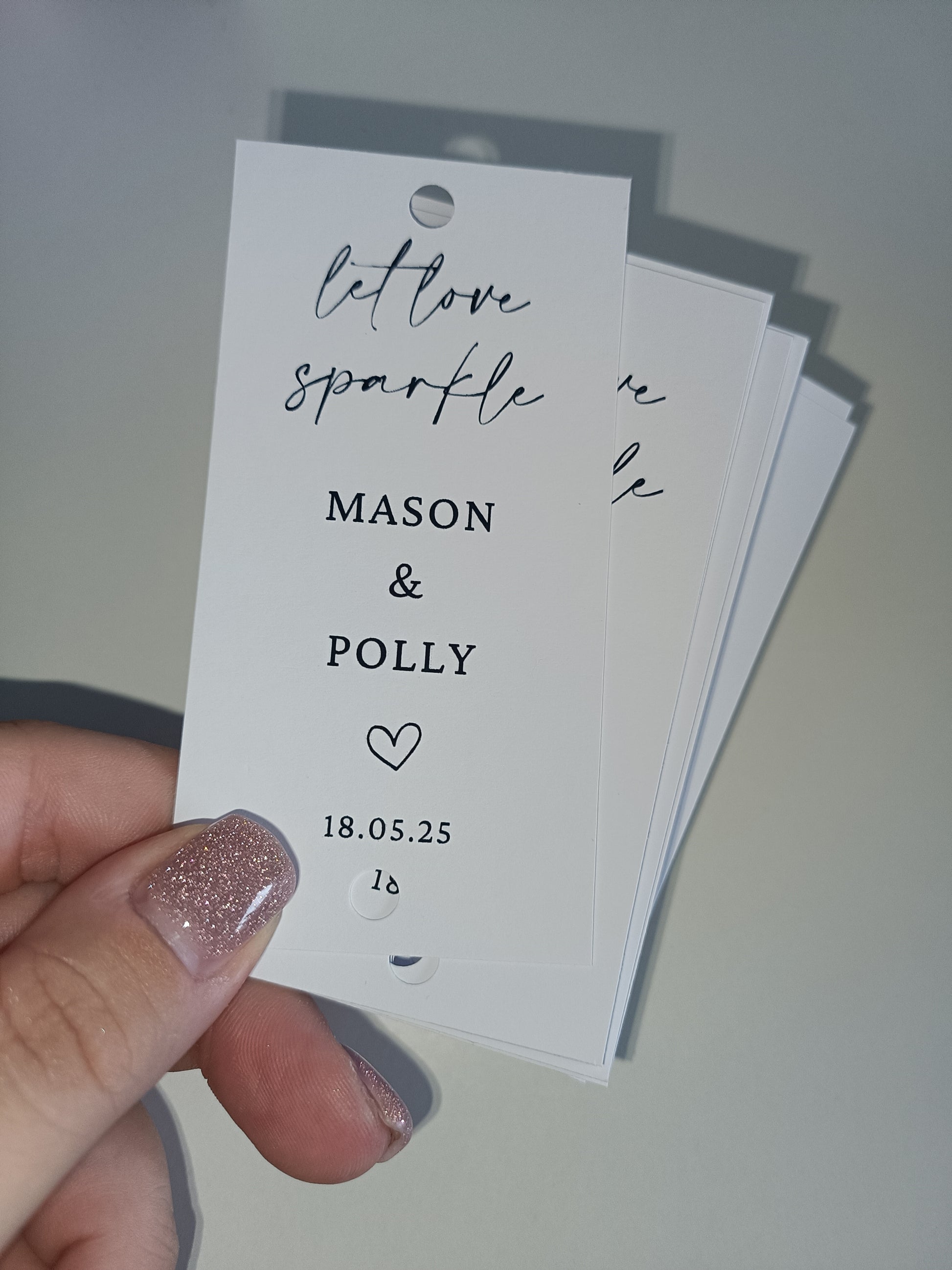 Tags will come with a hole punch in ready to slip onto a sparkler, to add to your wedding favours!
